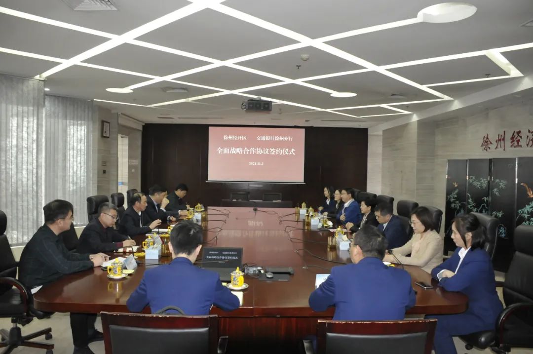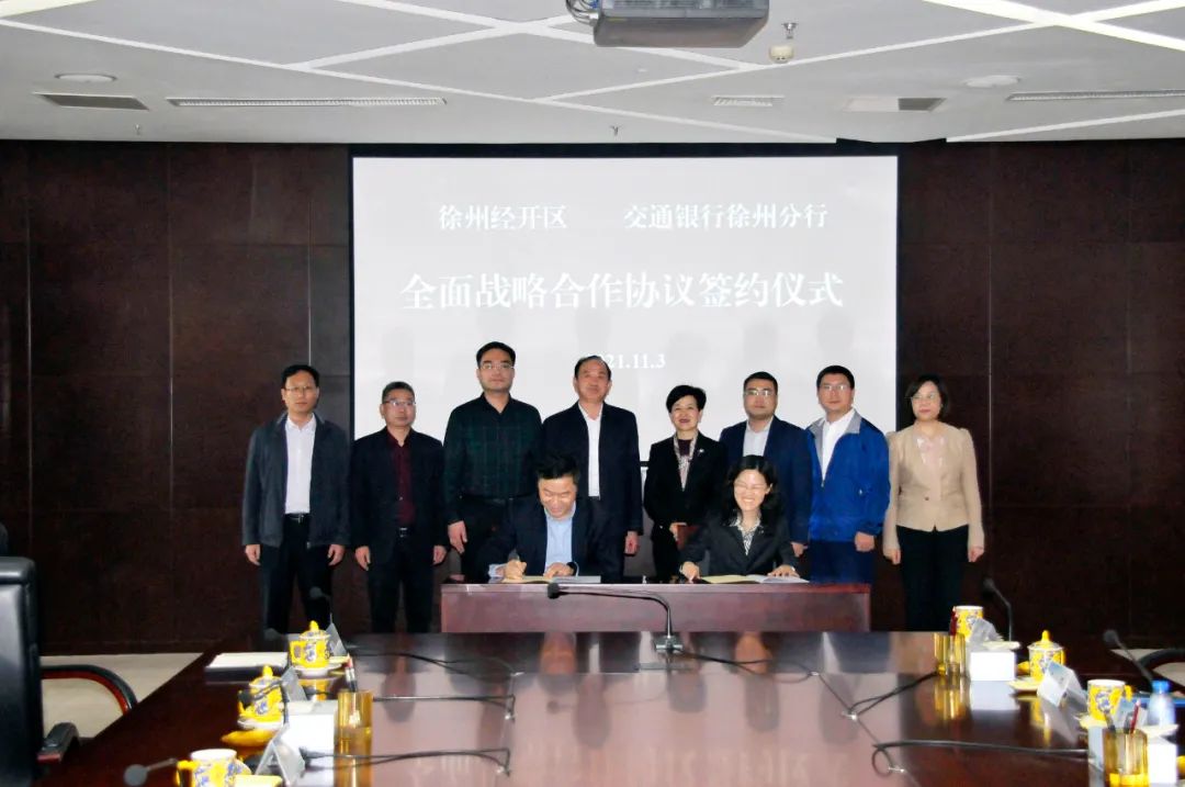 日前,徐州经开区与交通银行徐州分行签署全面战略合作协议,进一步深化合作、互利共赢,推动经开区产业金融创新发展、提升金融服务实体经济能级。经开区党工委副书记、管委会主任臧晓鹏,交通银行江苏省分行副行长李骏出席签约仪式,党工委委员、管委会副主任李欣主持。