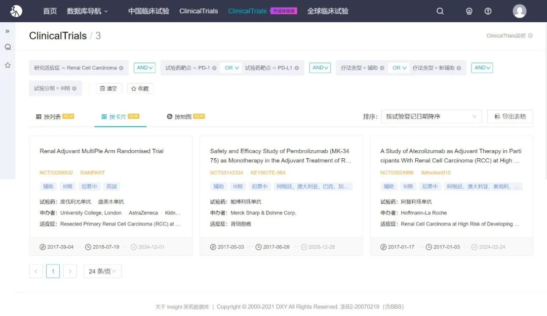 国外 PD-1/L1 用于肾细胞癌辅助治疗的临床试验(Insight)