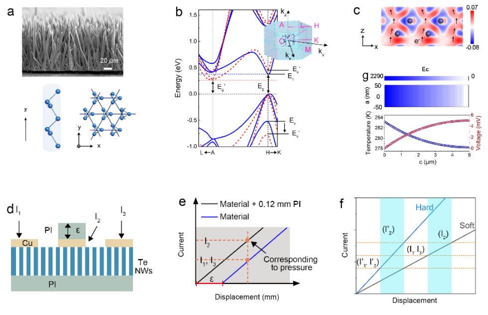 经过的长期尝试,他们最终选择从源头入手,选择 Te 半导体作为多功能感知材料。原因在于 Te 是传统的热电材料,同时还具有压电和光电特性。