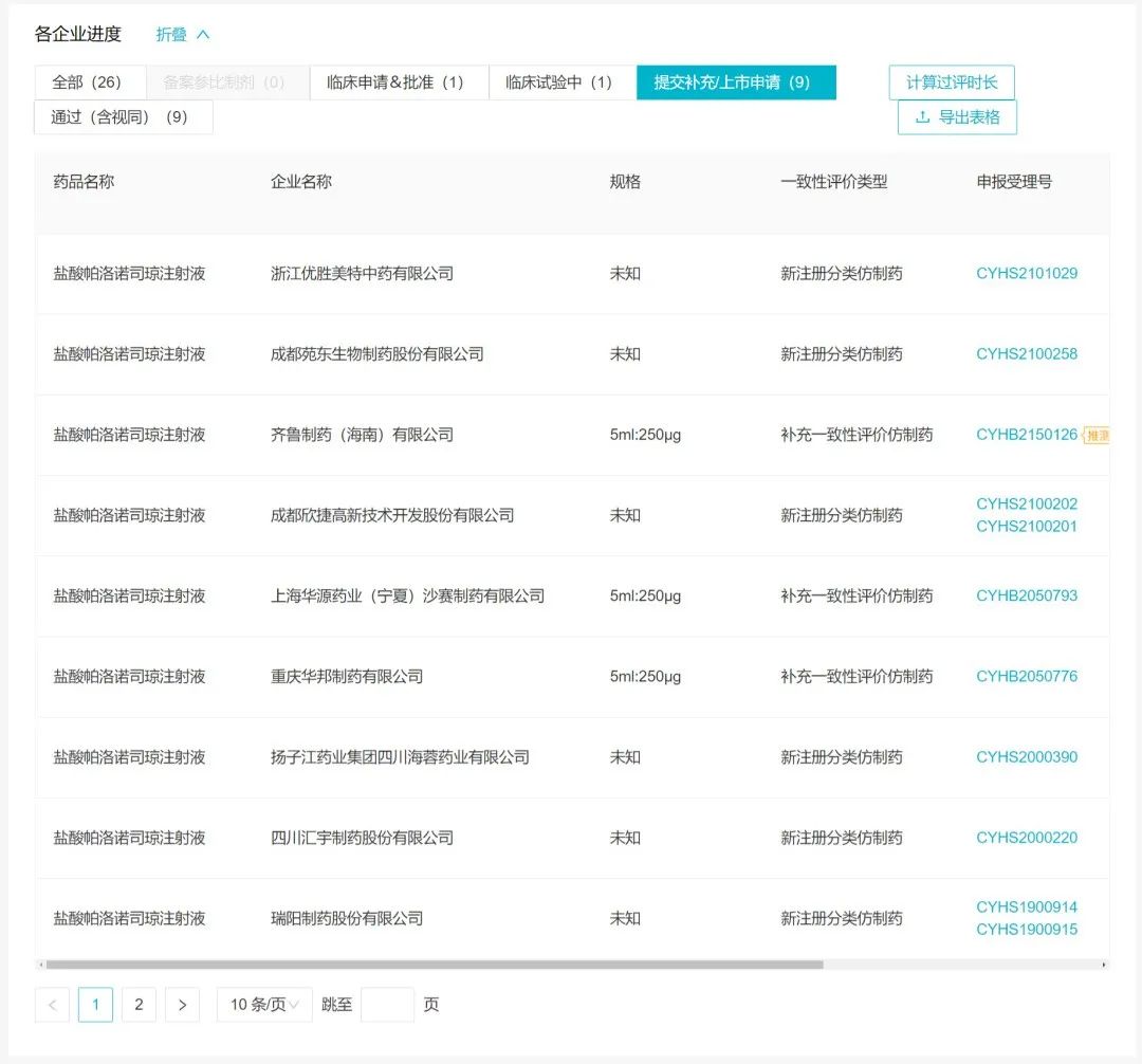 此外,Insight 数据库显示,对于该产品,目前国内还有 3 家企业已递交一致性评价补充申请,6 家企业已递交新注册分类上市申请。