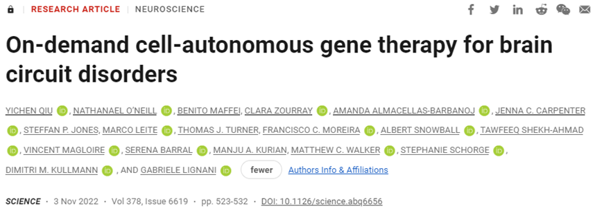 Yichen Qiu et al. On-demand cell-autonomous gene therapy for brain circuit disorders, Science, 2022, doi:10.1126/science.abq6656.