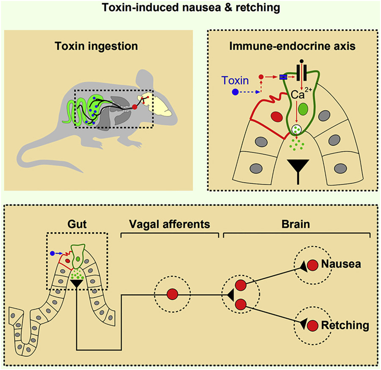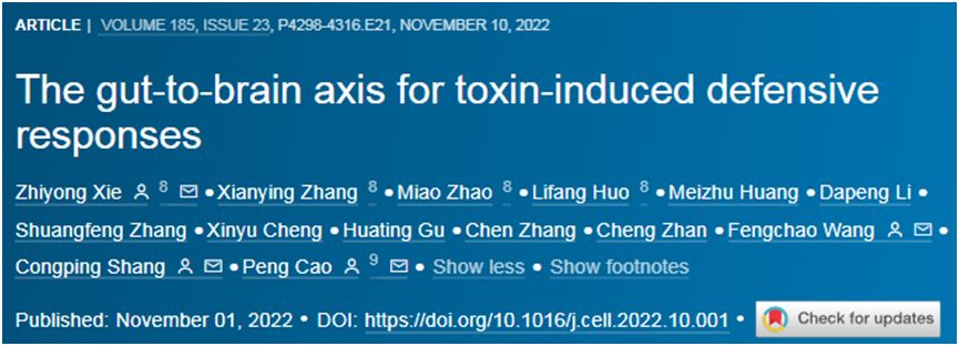 Zhiyong Xie et al. The gut-to-brain axis for toxin-induced defensive responses, Cell, 2022, doi:10.1016/j.cell.2022.10.001.