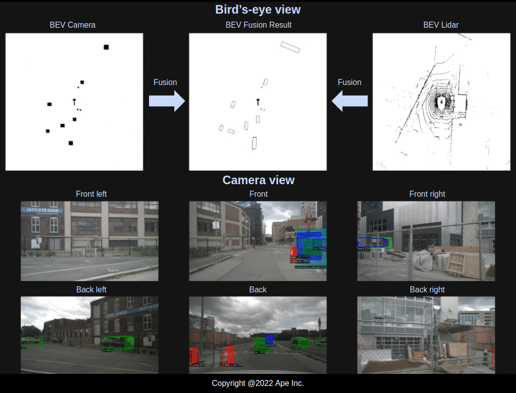 而行猩科技自研的自动驾驶感知系统 APANet,在此方面则实现了极大的突破。其最突出的优势便是多摄像头与固态激光雷达并重,其鸟瞰图上传感器特征级的融合可以让传感器融合变得可插拔化,既能增强其感知性能,又有利于传感器冗余。