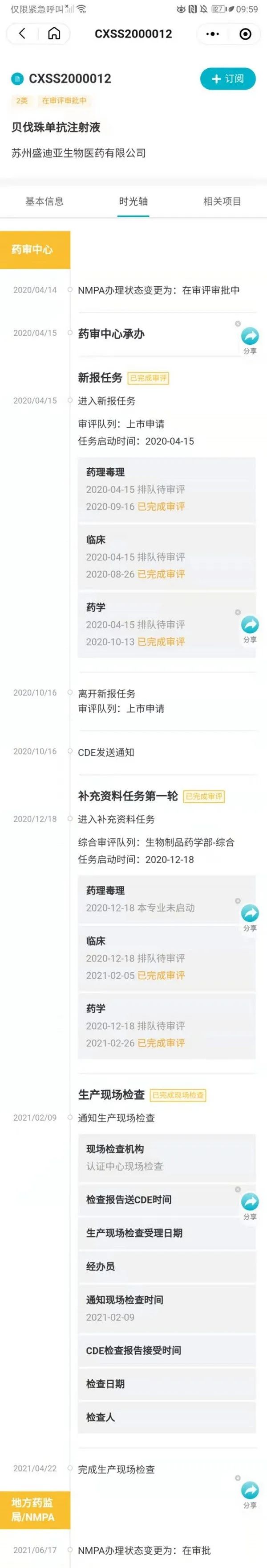 6 月 22 日,据 Insight 数据库显示,恒瑞的「贝伐珠单抗生物类似药」上市审评进入在审批状态,预计即将获批,成为国内获批的第四款贝伐珠单抗生物类似药。