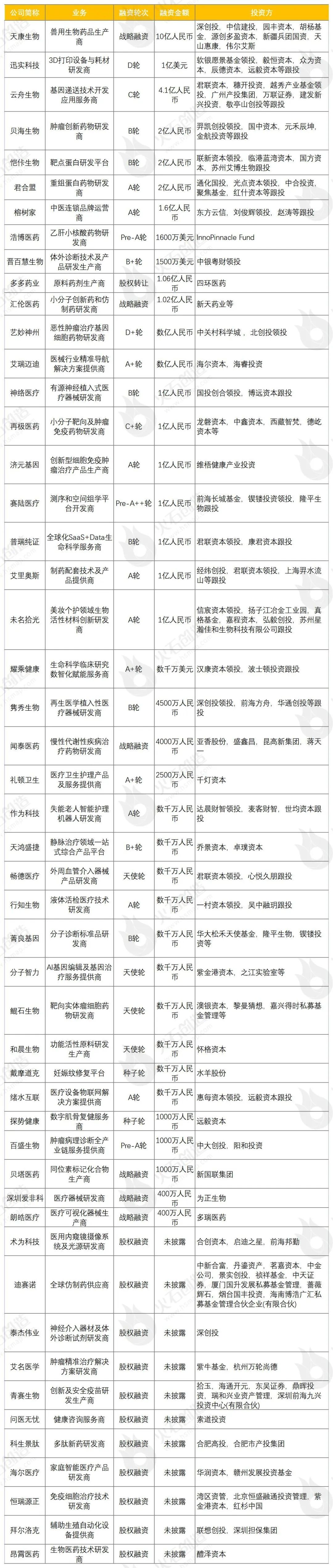 本月医健行业活跃投资机构:远毅资本、君联资本(4起)