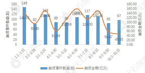 本月共97个项目获得投资,累计金额超45.53亿元,单笔融资金额超过亿元的案例20起,合计融资金额高达42.32亿元,占本月融资规模总额的92.95%。