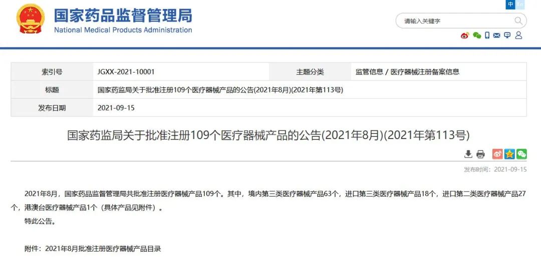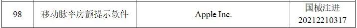 近日,根据国家药监局官网发布的《关于批准注册109个医疗器械产品的公告》(2021年8月)(2021年第113号)显示,苹果公司(Apple Inc)申报产品“移动脉率房颤提示软件”获得国家药监局注册批准,注册证编号为国械注进20212210317,注册类别为进口第二类医疗器械。这是苹果公司在中国获得的第二张医疗器械注册证。