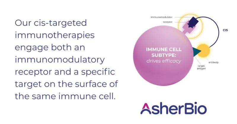 Asher Bio 旨在推进源自不同细胞因子和细胞类型的一系列顺式靶向疗法,每一种都旨在解决限制许多免疫疗法疗效和耐受性的多效性挑战。通过在同一细胞上激活两种受体,一种用于治疗作用的免疫调节受体和一种用于将治疗引导至所需细胞类型的特异性靶受体,Asher Bio 的顺式靶向免疫疗法寻求提供一个新的选择性水平,具有潜力提供卓越的临床结果和改善的安全性。