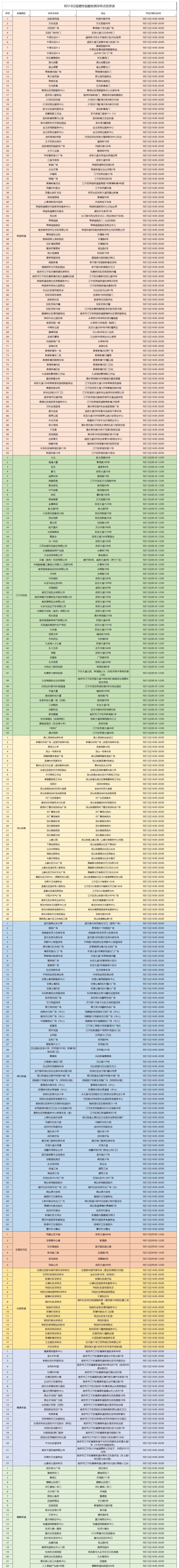 规模性核酸检测采样点信息表