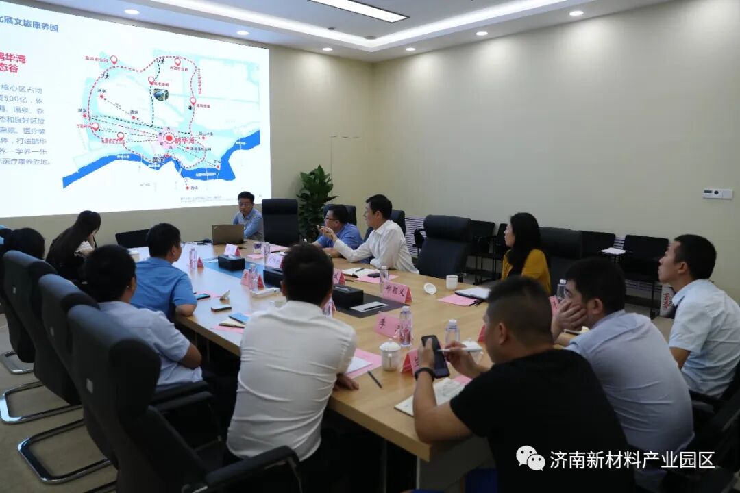 会上,双方观看了《如是天桥》的宣传片,了解了天桥区的区情实际和历史沿革。陈西武对周翔一行人的来访表示欢迎,并对该公司在医疗康养领域取得的成绩表示肯定,随后从区位优势、空间优势、产业定位、生态发展四个方面详细介绍了园区的基本情况,以及桑梓组团发展规划。他指出,随着经济社会的持续发展,现代人群对医疗康养的需求越来越迫切,桑梓组团将按照产城融合的理念规划打造“北田园、中产城、南文旅”的发展格局,其中“北展文旅康养园”作为重点园区之一,将规划建设国际康养谷,结合现有的万亩花海、平原林场、生态廊道等自然资源,打造国际医疗康养基地,契合新绿色药业公司的选址定位及需求。