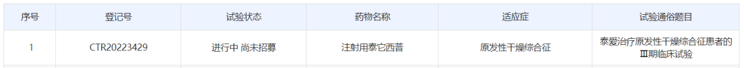 12月27日,中国药物临床试验登记与信息公示平台官网公示,荣昌生物已启动一项3期临床,以评估注射用泰它西普治疗原发性干燥综合征患者的有效性和安全性。此前,泰它西普已在针对该适应症的中国2期临床研究中取得积极结果。
