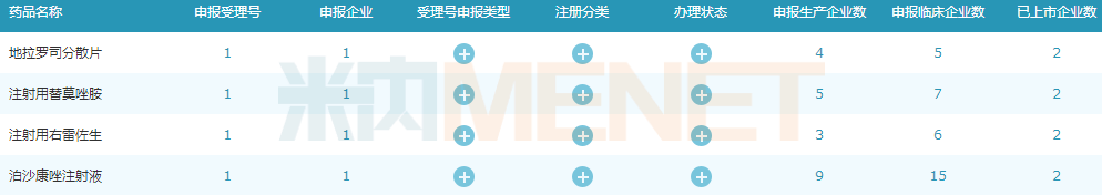 来源:米内网MED2.0中国药品审评数据库