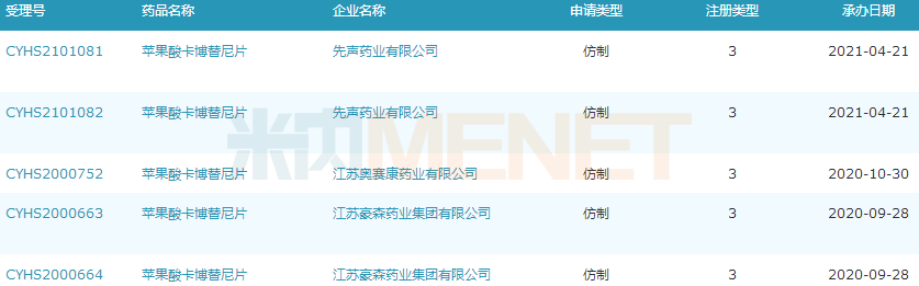 苹果酸卡博替尼片新分类报产情况