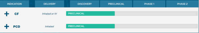 ReCode的主要项目专注于遗传性呼吸系统疾病PCD和CF。最近来自公司基于RNA 的 CF 项目的临床前数据表明,其 LNP 可以传递 CFTR mRNA,在 CF 患者衍生的 hBE 细胞模型中恢复囊性纤维化跨膜电导调节器 (CFTR) 功能。公司用于治疗 PCD 的基于 mRNA 的吸入计划的临床前数据表明,其 LNP 制剂成功地将 DNAI1 mRNA 递送至 hBE、小鼠和 NHP 的靶向气道上皮细胞,并且在处理过的 DNAI1 缺陷型 hBE 细胞中恢复了强大的纤毛活性。