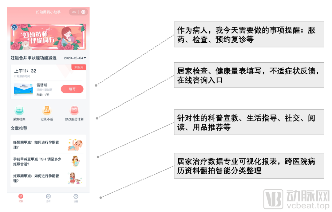 “这看起来是一件很小、很简单的事情,但其实这里面有很多细节需要去设计,从患者端的服务质量、使用体验、提醒科普的科学准确,到需要连通医院端的便捷、易操作、易收集以及庞大的数据云端支持等等的细节设计和软硬件能力其实十分考验产品和服务的。”陈礼治表示,“除此之外,可能最大的困境是医院对此的推动力较弱。但最近的药学服务新政,以及一些地方药师门诊服务费确立,我们觉得现在是一个抢占服务标准的机遇期。”
