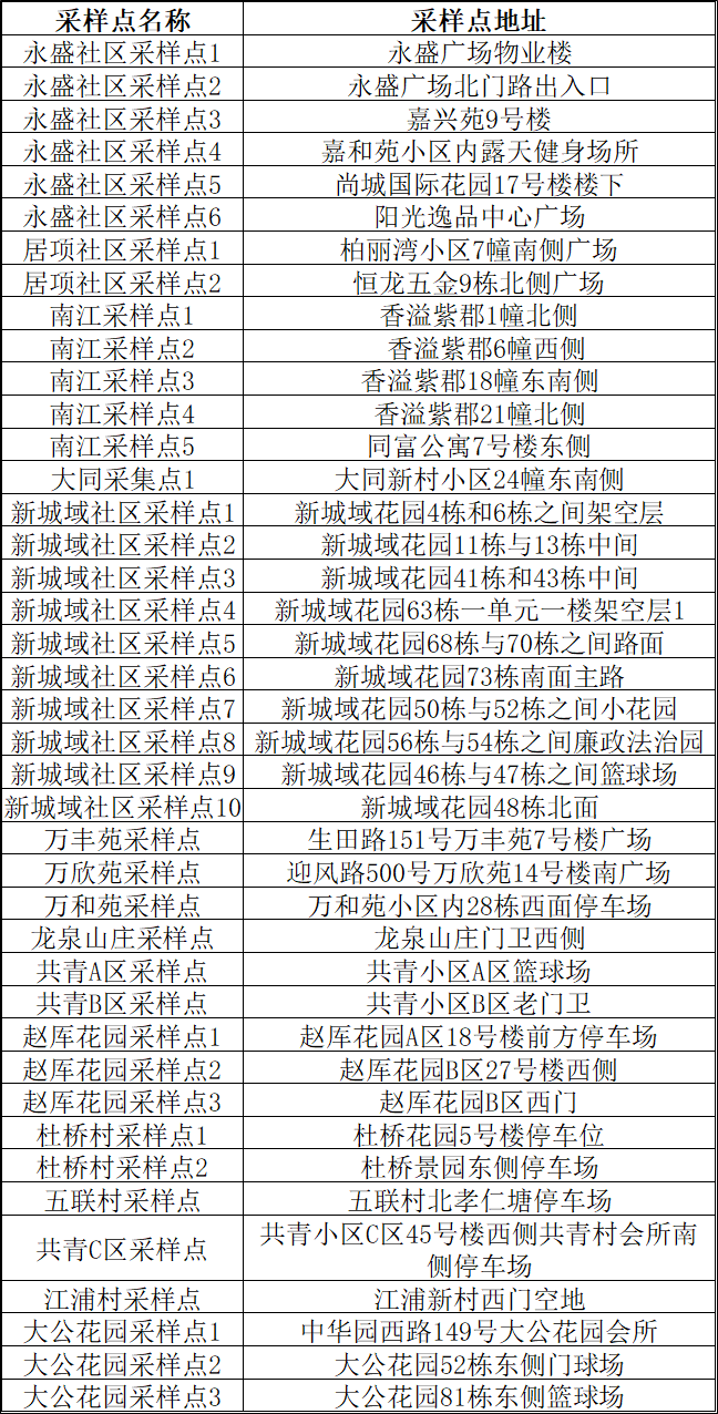 核酸检测采样点位明细