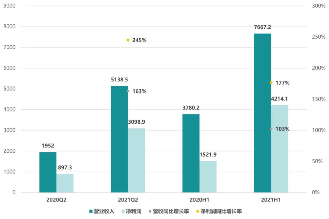 图表1. 再生元2021Q2和2021H1业绩及同比增长率