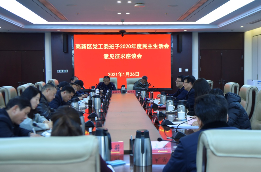 1月26日,南昌高新区召开党工委班子2020年度民主生活会意见征求座谈会。区党工委书记黄俊主持,区领导陈艳、喻慧平、熊俊,部分村(社区)书记、区内企业代表、部分“两代表一委员”、群众代表等参加座谈。