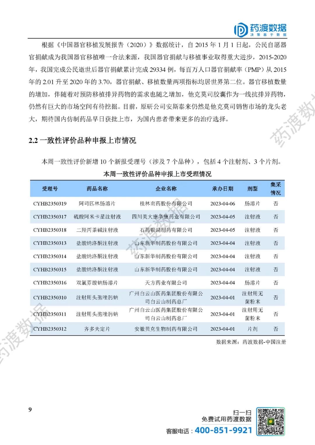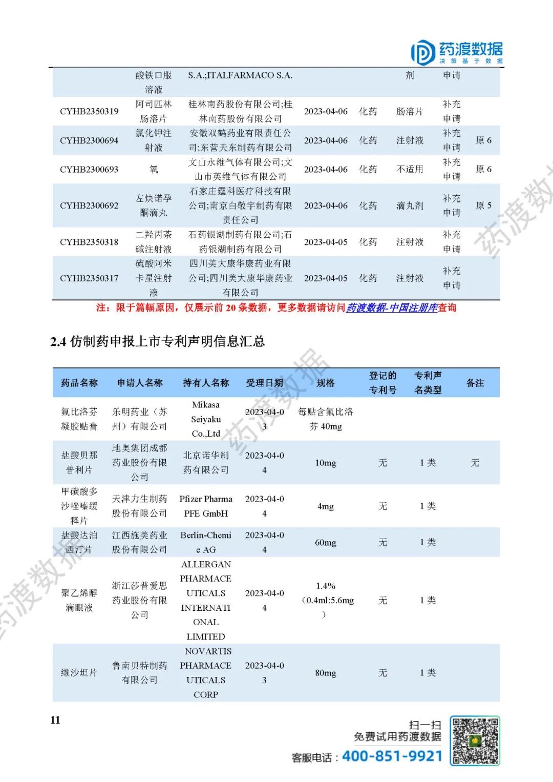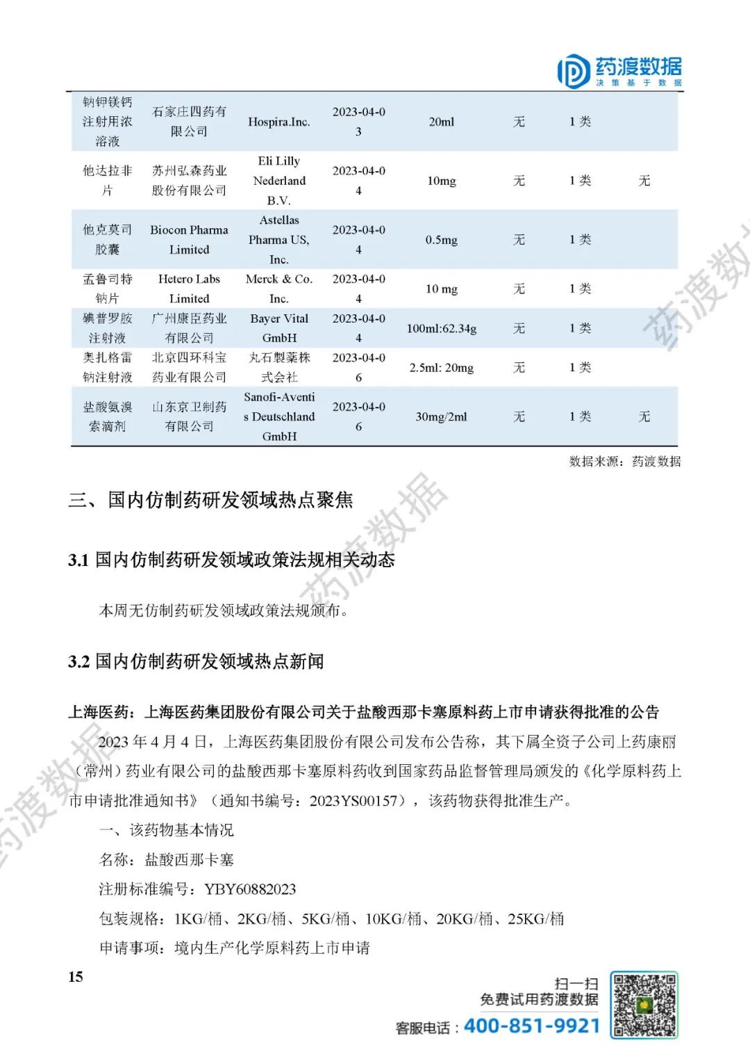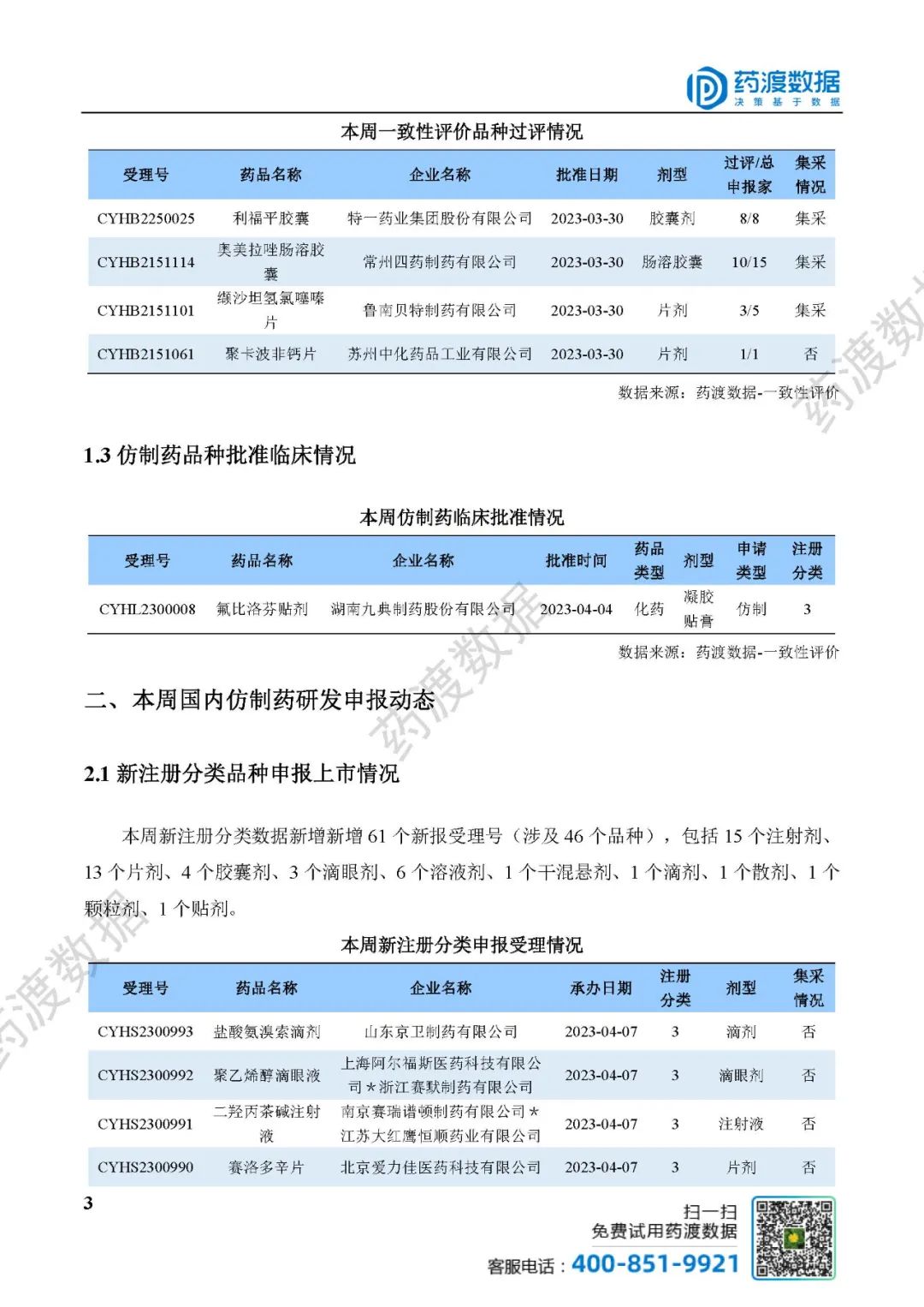 【药渡报告-仿制药篇】2023.04.1-2023.04.7