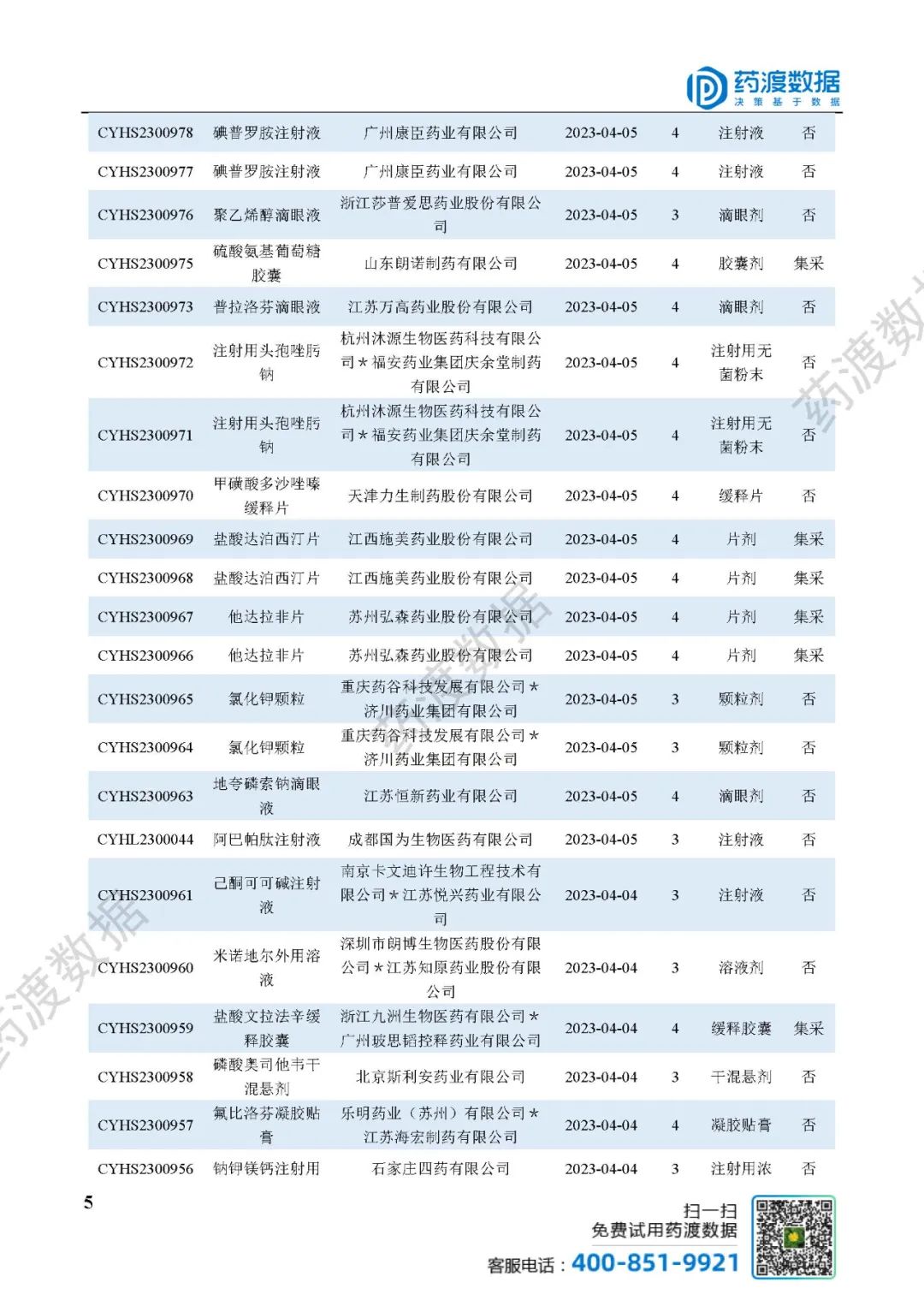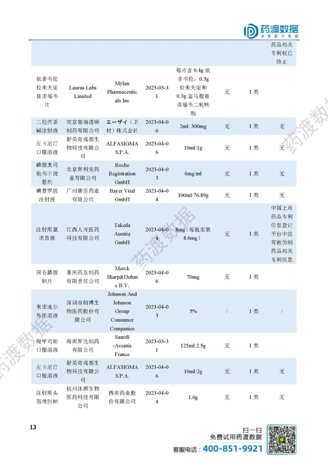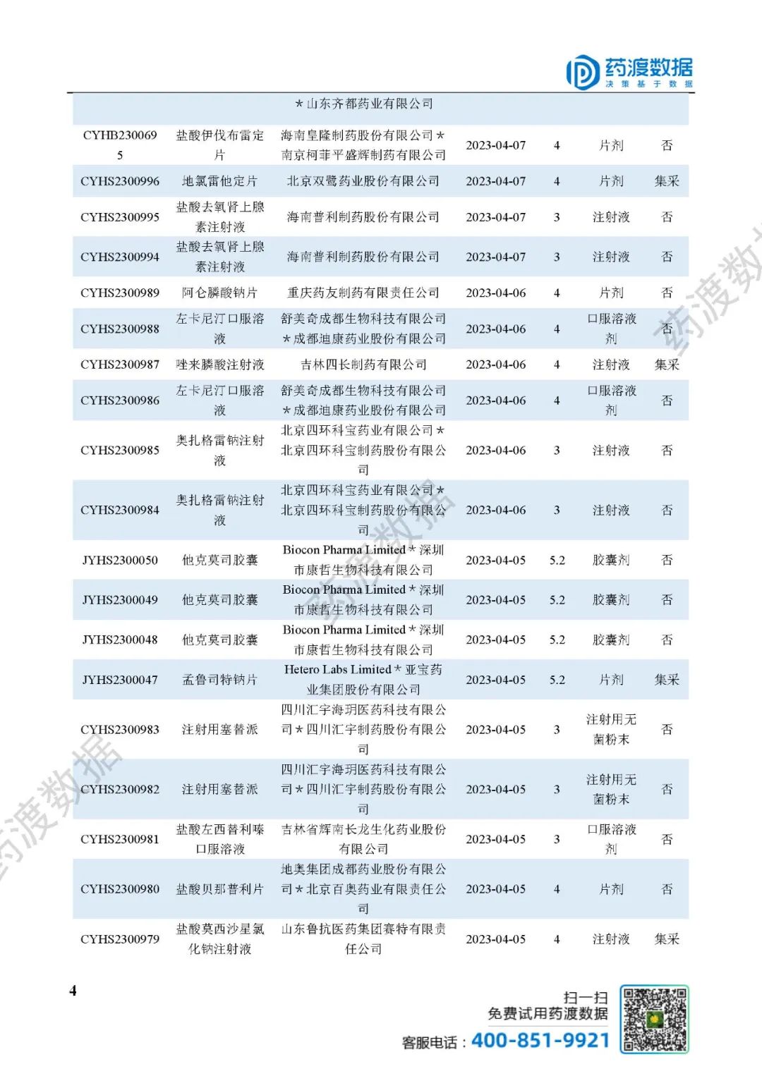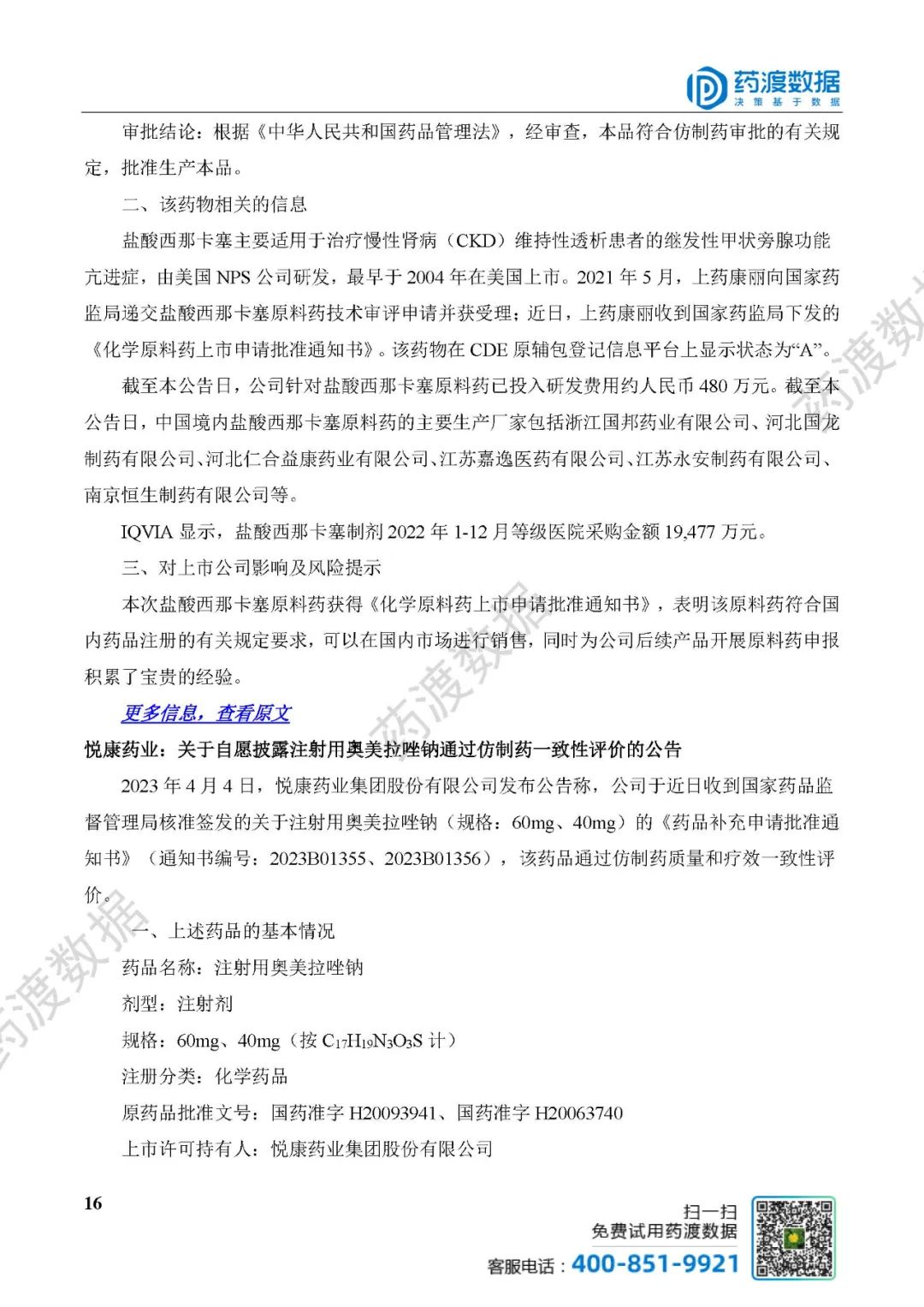 【药渡报告-仿制药篇】2023.04.1-2023.04.7