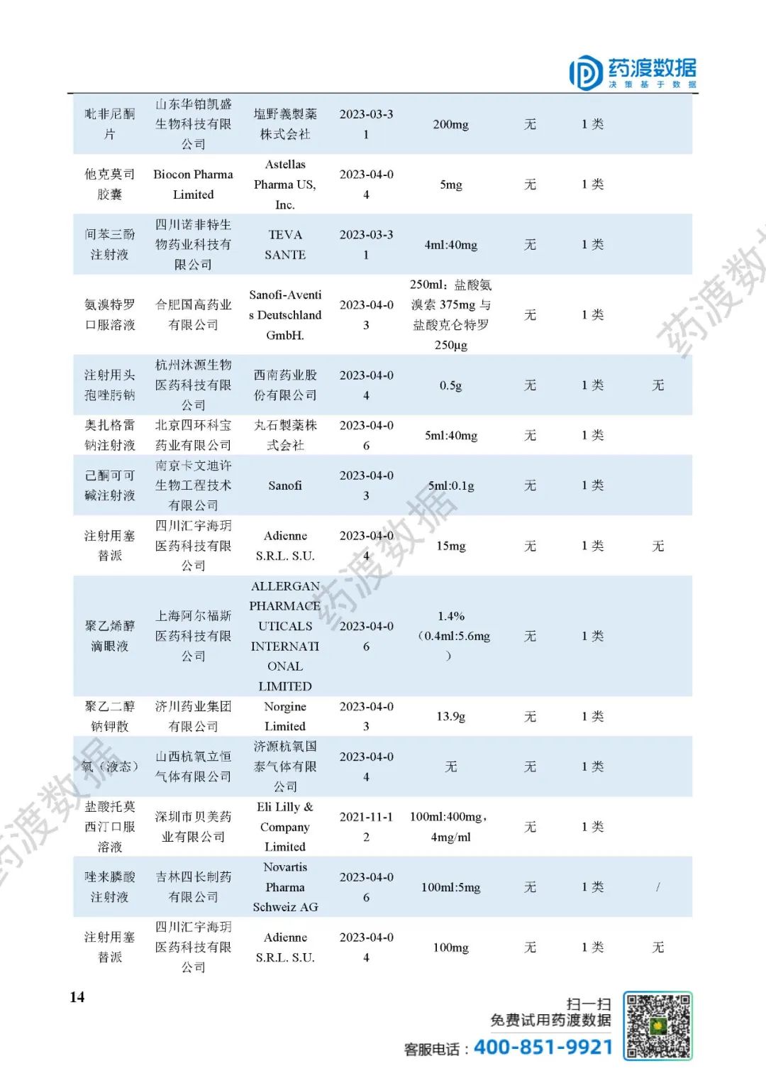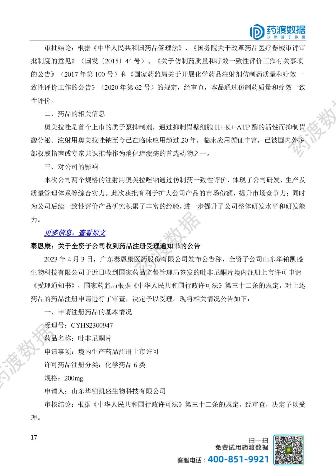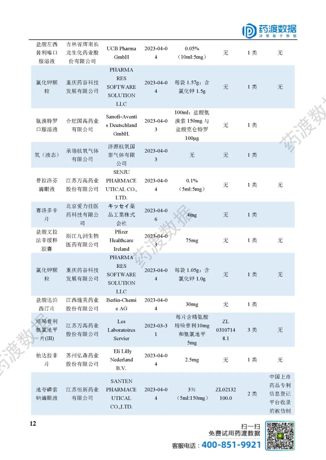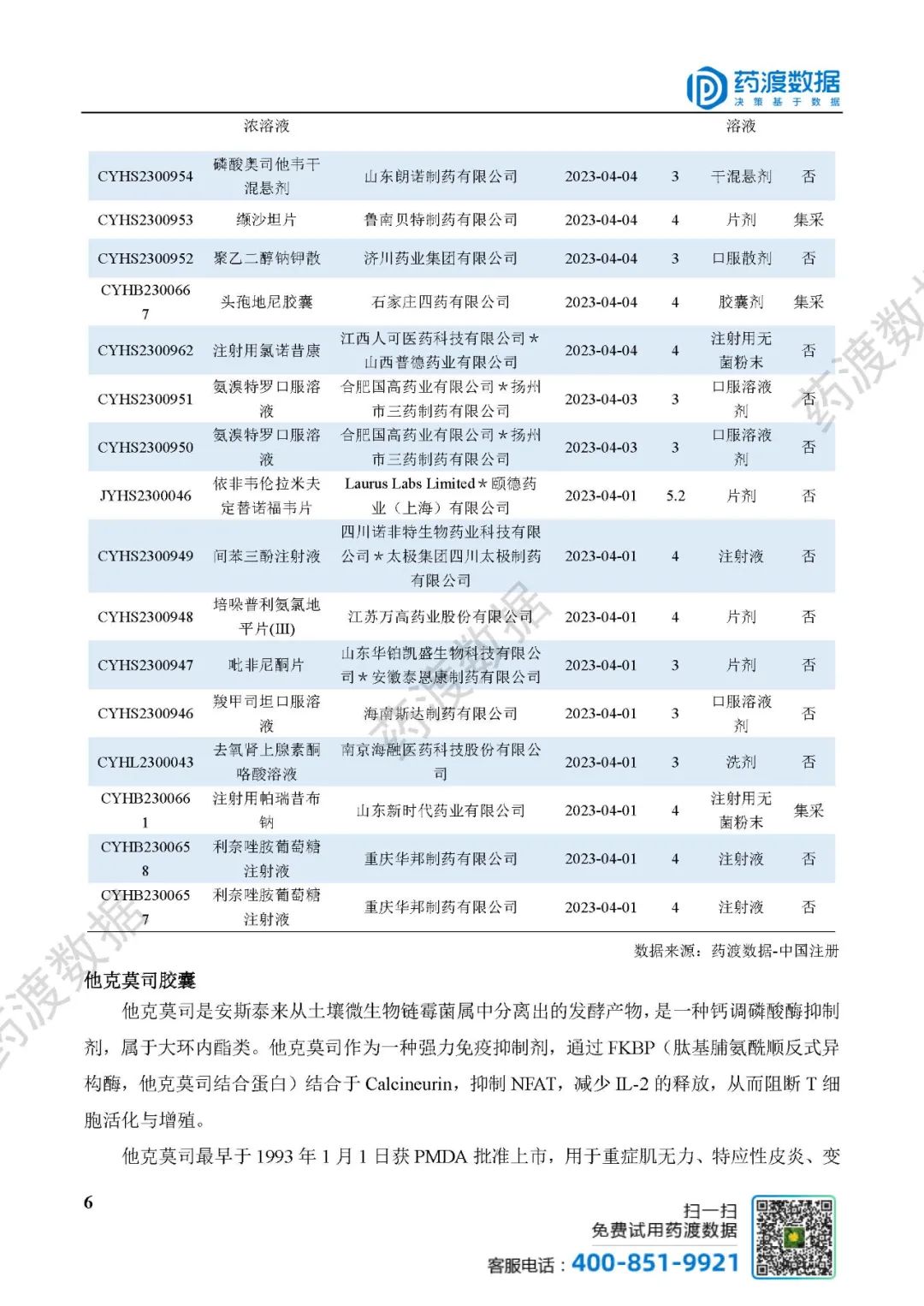 【药渡报告-仿制药篇】2023.04.1-2023.04.7
