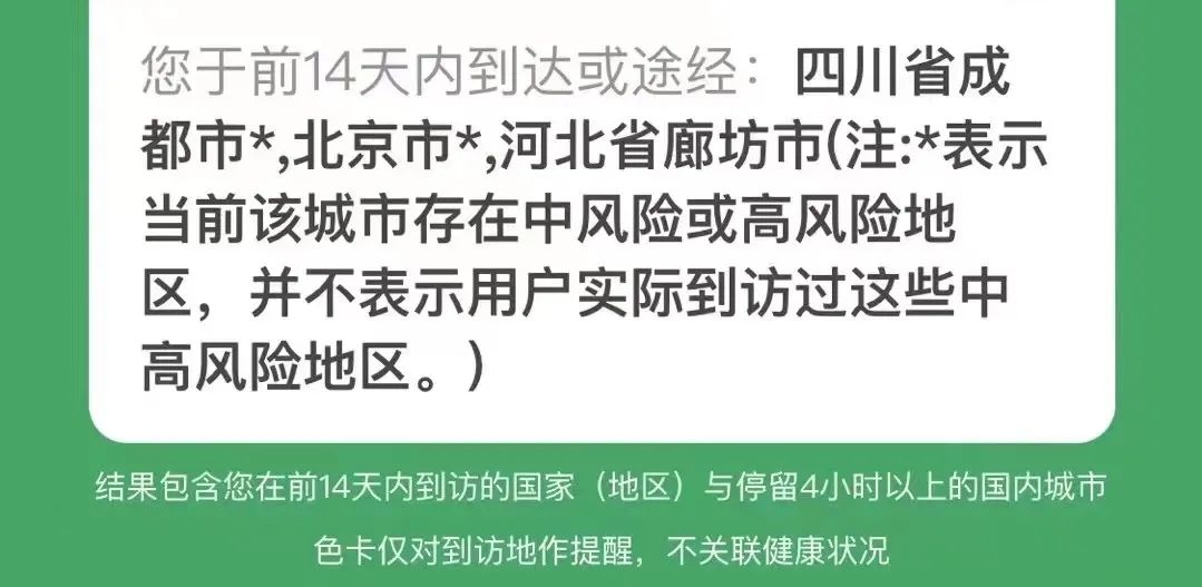 • 若行程码带*(如下图)的参会人员,除了健康码和行程码外,需要额外提供48小时内有效的核酸检测阴性证明。