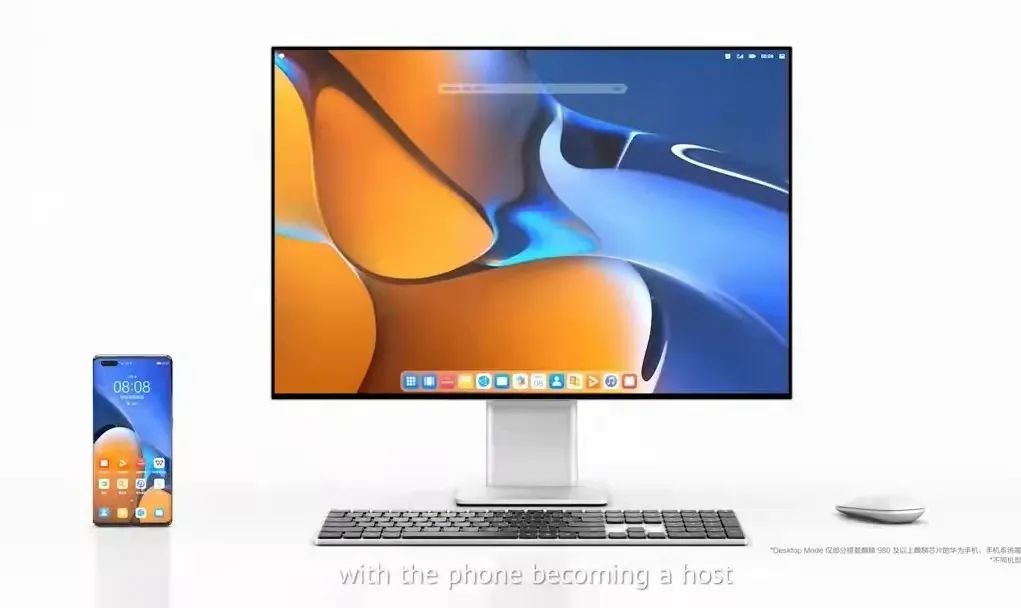 在鸿蒙系统的支持下,这款显示器最大的亮点在于它可以通过Desktop Mode实现了手机一碰秒变主机,显示器秒变「电脑」的操作,