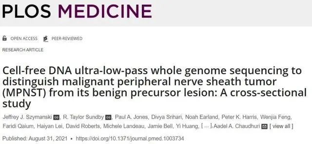 其中一项由美国华盛顿大学医学院(Washington University School of Medicine, USA)的Jeffrey Szymanski领导,该研究展示了一种称为血浆无细胞DNA超低通全基因组测序(plasma cell-free DNA ultra-low-pass whole genome sequencing)的方法,它可用于区分由1型神经纤维瘤病(neurofibromatosis type 1)引起的良性和恶性肿瘤,并帮助监测治疗效果。