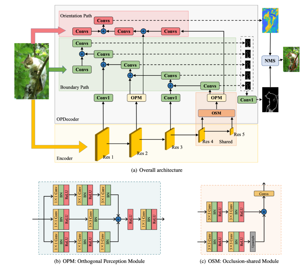上述方法在网络架构上采用了共享全部 encoder-decoder 的形式,使两个任务可以共享信息、相互促进。在预测遮挡方向时,直接使用逐像素角度值进行遮挡方向的指示,这方便了之后与边界结果的耦合。但是,这些方法在两任务的共享网络结构和遮挡方向的预测上还有不足。