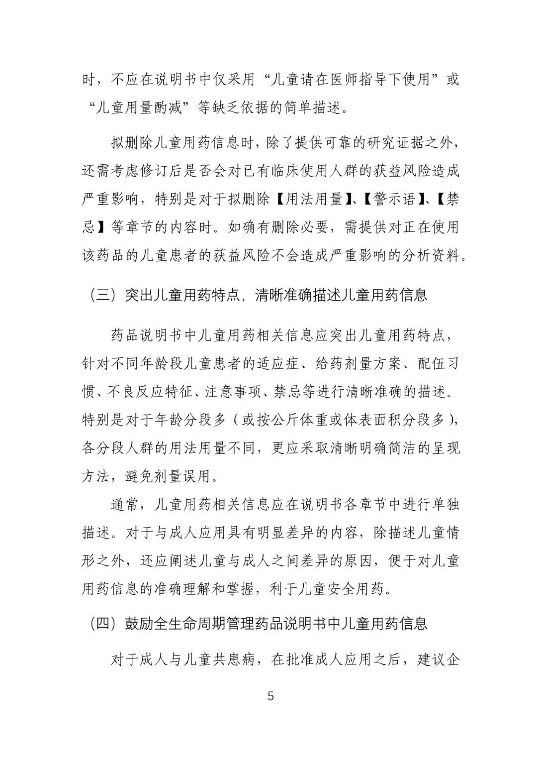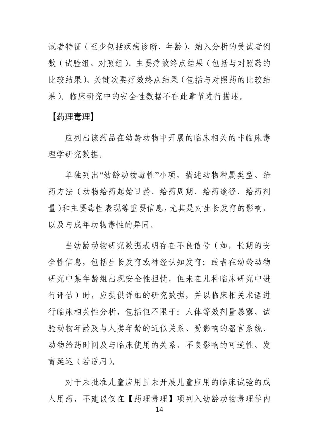 药品说明书中儿童用药信息缺失或表意不明确是导致儿科不规范处方行为和不合理用药引发儿童用药安全有效性问题的重要原因之一。为促进企业有序开展起草和完善药品说明书中儿童用药信息的相关工作,药审中心起草了《化学药品和治疗用生物制品说明书中儿童用药相关信息撰写的技术指导原则》。经征求中心内部各相关专业及部分儿科医疗机构意见,形成征求意见稿。