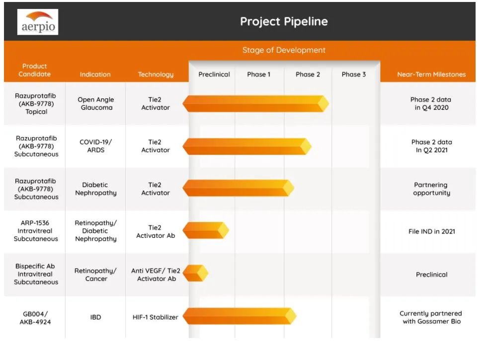 Aerpio Pharmaceuticals,Inc.是一家生物制药公司,专注于开发激活Tie2的化合物,激活Tie2可能具有治疗潜力的适应症。2021年1月,Aerpio宣布公司将着力于临床资产和现金资源,以实现股东价值最大化。