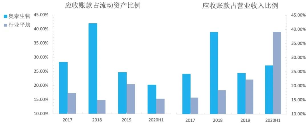 图4:奥泰生物应收账款占流动资产、营业收入比例