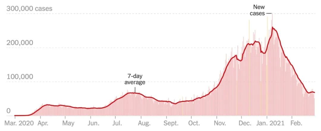 图3:美国新冠肺炎新增病例数每日变化,截至2021年3月1日