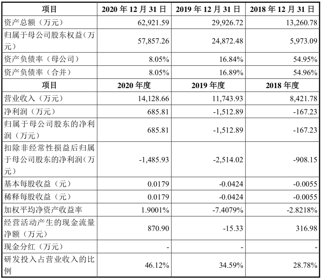 根据招股书披露,2018年-2020年,电生理股份营业收入总额分别为8421.78万元、11743.93万元、14128.66万元,实现归属于母公司股东的净利润分别为-167.23万元、-1512.89万元、685.81万元。