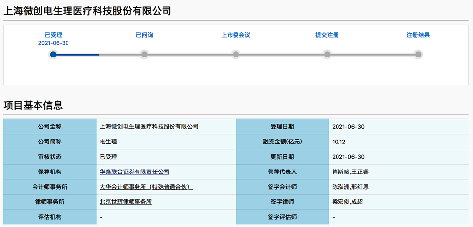 张通社获悉,6月30日,上海证券交易所正式受理上海微创电生理医疗科技股份有限公司(以下简称“电生理股份”)上市申请,拟融资10.12亿元。据悉,微创医疗(00853.HK)现拥有电生理股份38.49%股权。