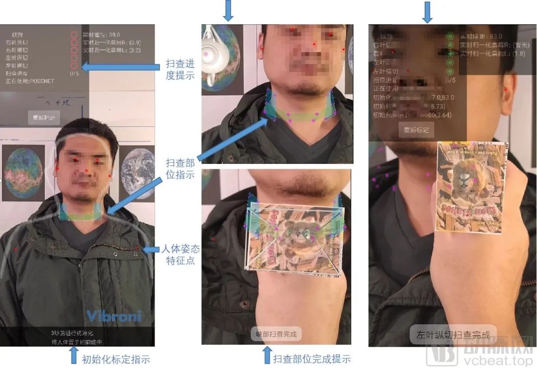 对应来讲,即使用该产品只需直接将扫查目标位置及导引呈现给操作者,而不必依靠经验在体表搜索目标;三维位置信息及超声图像,可同步显示在AR截面中,帮助医师进行判断;可直接在手机等移动端运行;同样的框架结构也可用于腹部超声、盆腔超声等其他位置和器官的扫查导引。