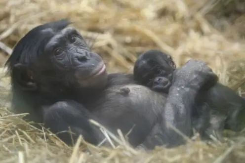 图1. 成年倭黑猩猩和倭黑猩猩幼崽(Claudia Philipp拍摄于Zoo Wuppertal,photo by Claudia Philipp at Zoo Wuppertal with permission of use)