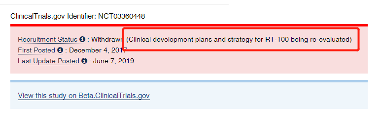 同患者基因治疗组与安慰剂组比较,患者的运动耐量无显著差异。而评价心衰的重要指标射血分数(EF值)在4周时较安慰剂组上升(P<0. 04),但在12周时EF值又无统计学差异(P = 0. 16)。在住院率方面,基因治疗组患者的住院率为9. 5%,而安慰剂组的住院率为28.6%(P = 0.1)。这些结果似乎表明Ad5(腺病毒)在心脏内递送具有持久性问题,研究人员也在发表论文中认为需要III期临床试验进行摸索。然而,可惜的是,进行该治疗的公司Renova Therapeutics在2019年时以重新评估RT-100的临床开发计划和战略为由撤回了III期临床,从该公司官网也并无后续太多关于RT-100的信息了。