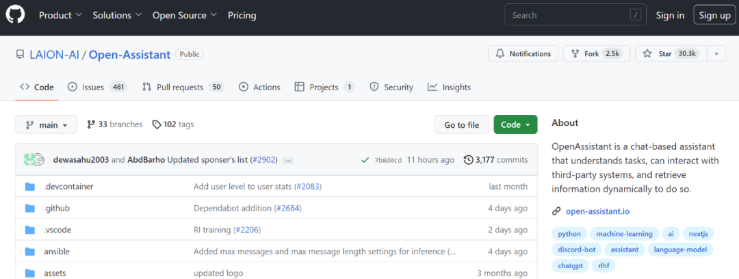 OpenAssistant 项目地址:https://github.com/LAION-AI/Open-Assistant