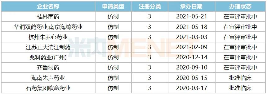 来源:米内网MED2.0中国药品审评数据库
