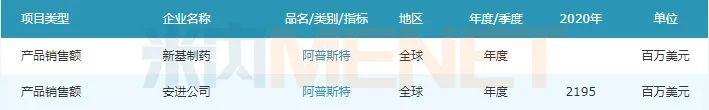 2019年8月,安进宣布以高达134亿美元的价格收购阿普斯特,成功将其纳入麾下。2020年,该产品全球销售额已超过20亿美元,是个全球重磅产品。