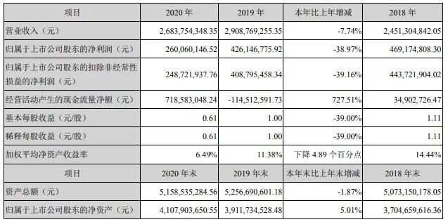 2012年,博雅生物登陆A股,其上市后,不管是营收还是归属于上市公司股东的净利润都在一路递增,但到了2019年,其净利出现了首次下滑,到了2020年,其营收和净利再次继续下滑。