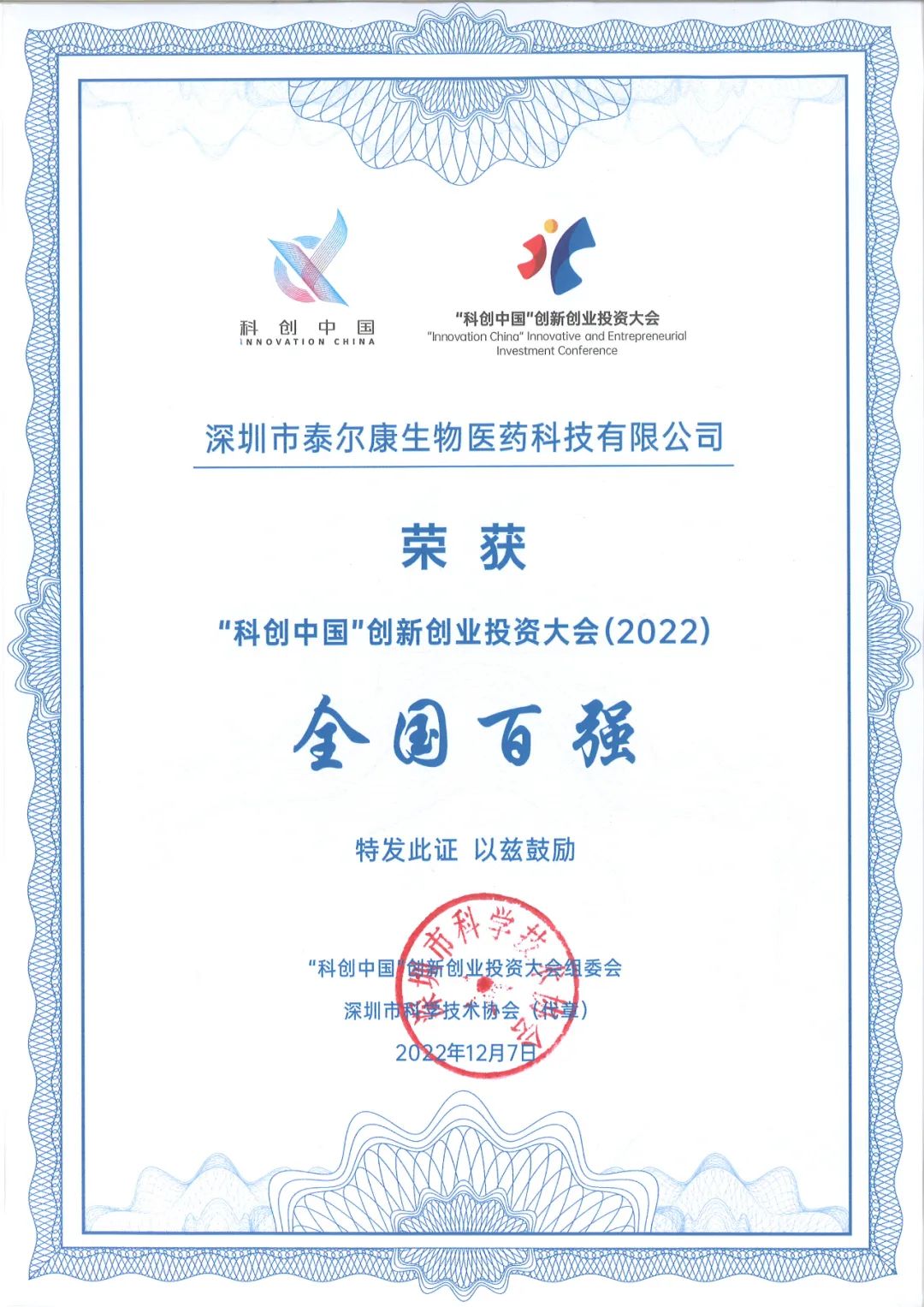 泰尔康作为创新药领潮者,以最新药物研发赛道--多肽偶联药物(PDC)及多肽靶向技术,为“科技创新探索药物研发浩瀚星海“添一盏星光。荣获“科创中国”创新创业投资大会(2022)全国百强,是业内专家对泰尔康在多肽偶联药物技术创新能力的高度肯定,鼓励为前沿科技找到新突破。