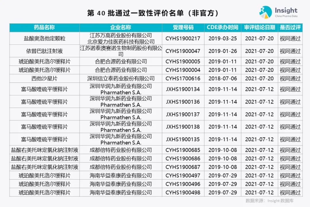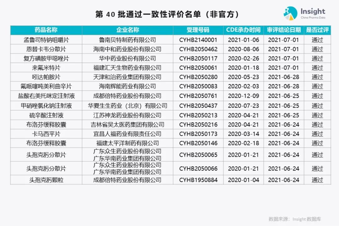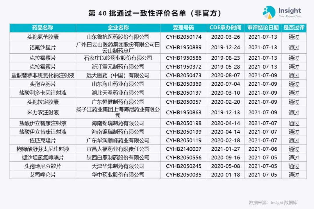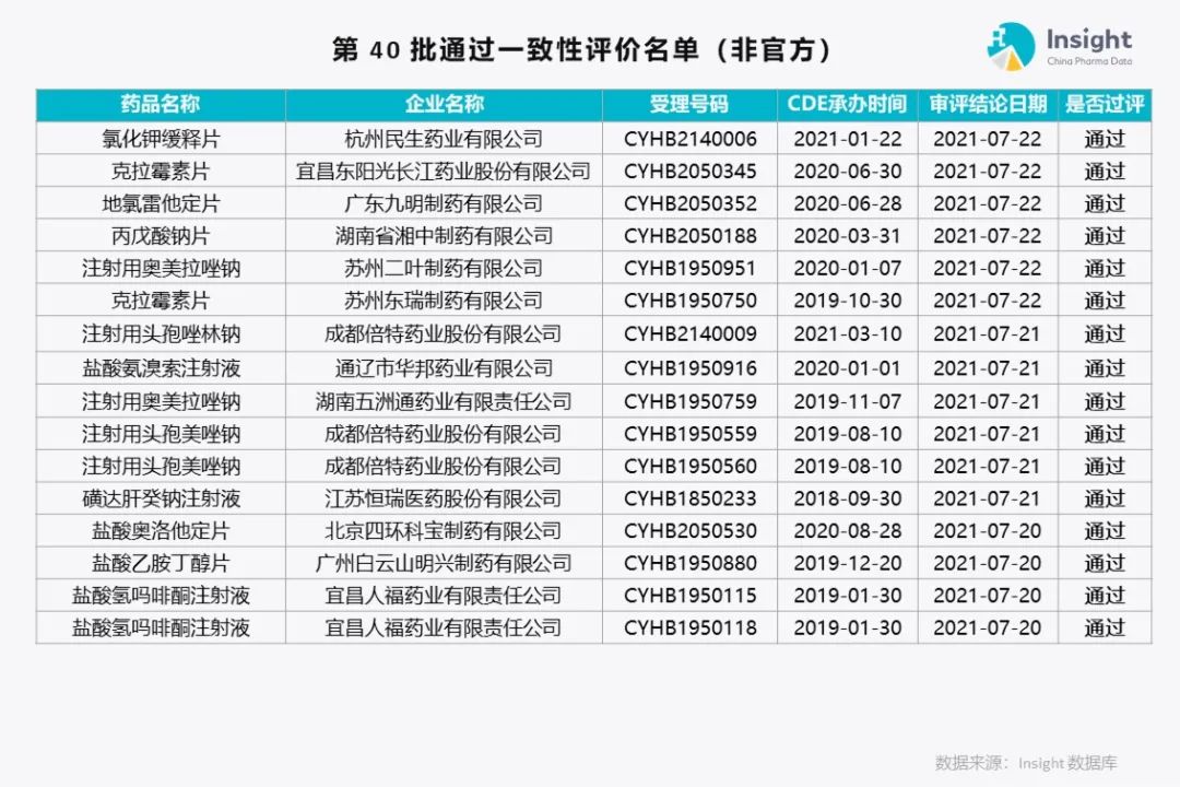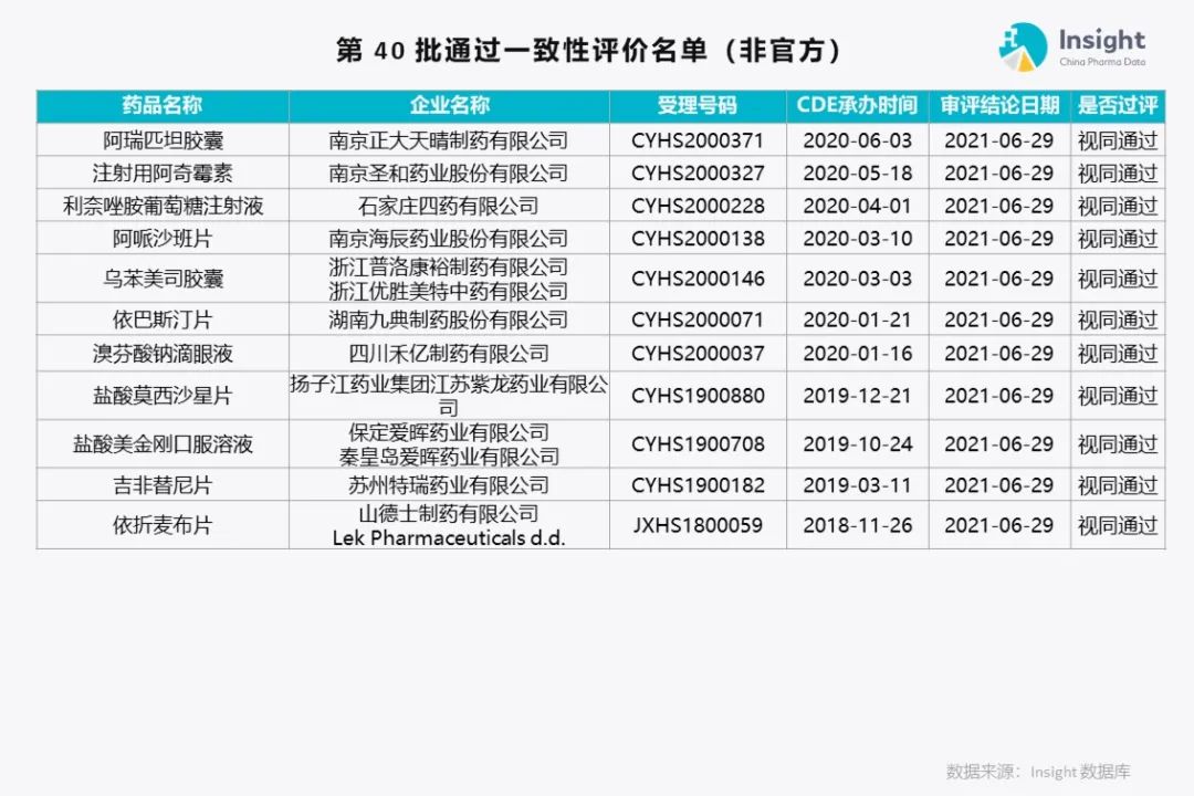 Insight 数据库(https://db.dxy.cn)独家整理了第 40 批通过一致性评价的品种名单,共 122 个受理号。