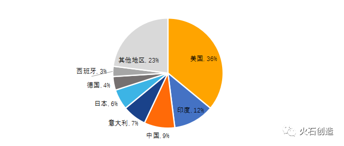 另一方面,细分类型的供应格局梯次仍较为明显。从细分领域结构来看,中国凭借工业化优势在大宗原料药方面占据优势,印度以其仿制药产业拉动特色原料药生产,而美国仍然在专利原料药方面占据优势。这一点在规范市场的原料药供应格局上体现得尤为明显,美国以36%居首,其次为印度的12%和中国的9%。