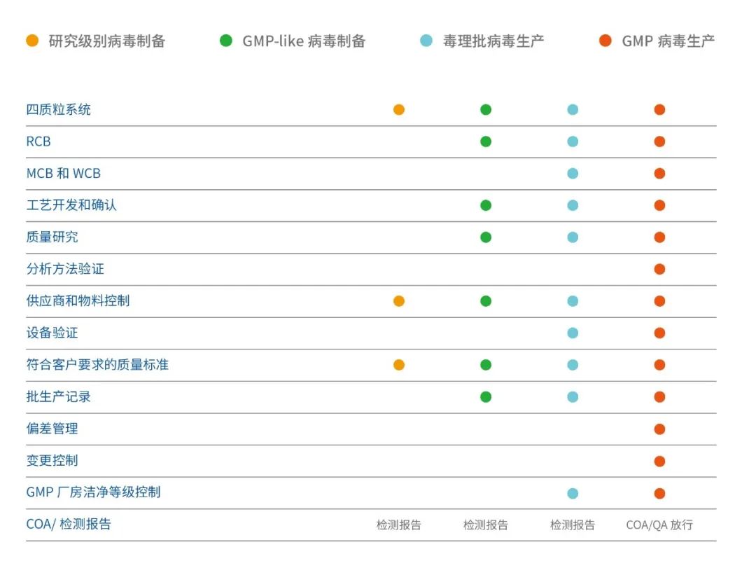 悬浮无血清慢病毒工艺开发和GMP生产平台,具有细胞培养上清病毒载体滴度高、无动物源性成分、工艺操作简单化、纯化工艺感染滴度回收率高、生产成本降低以及易于放大等优势。