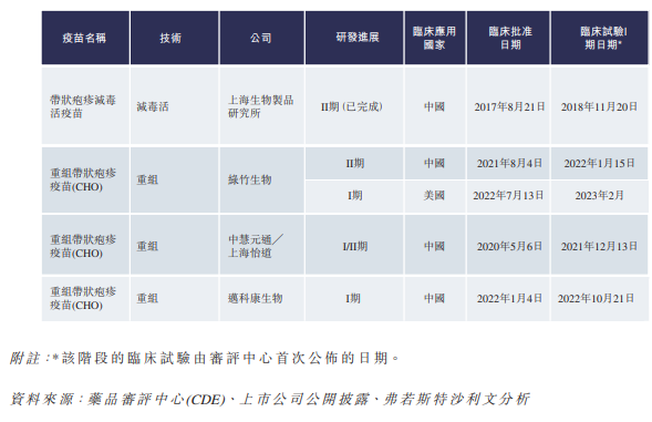 中国开发中的带状疱疹疫苗的详情