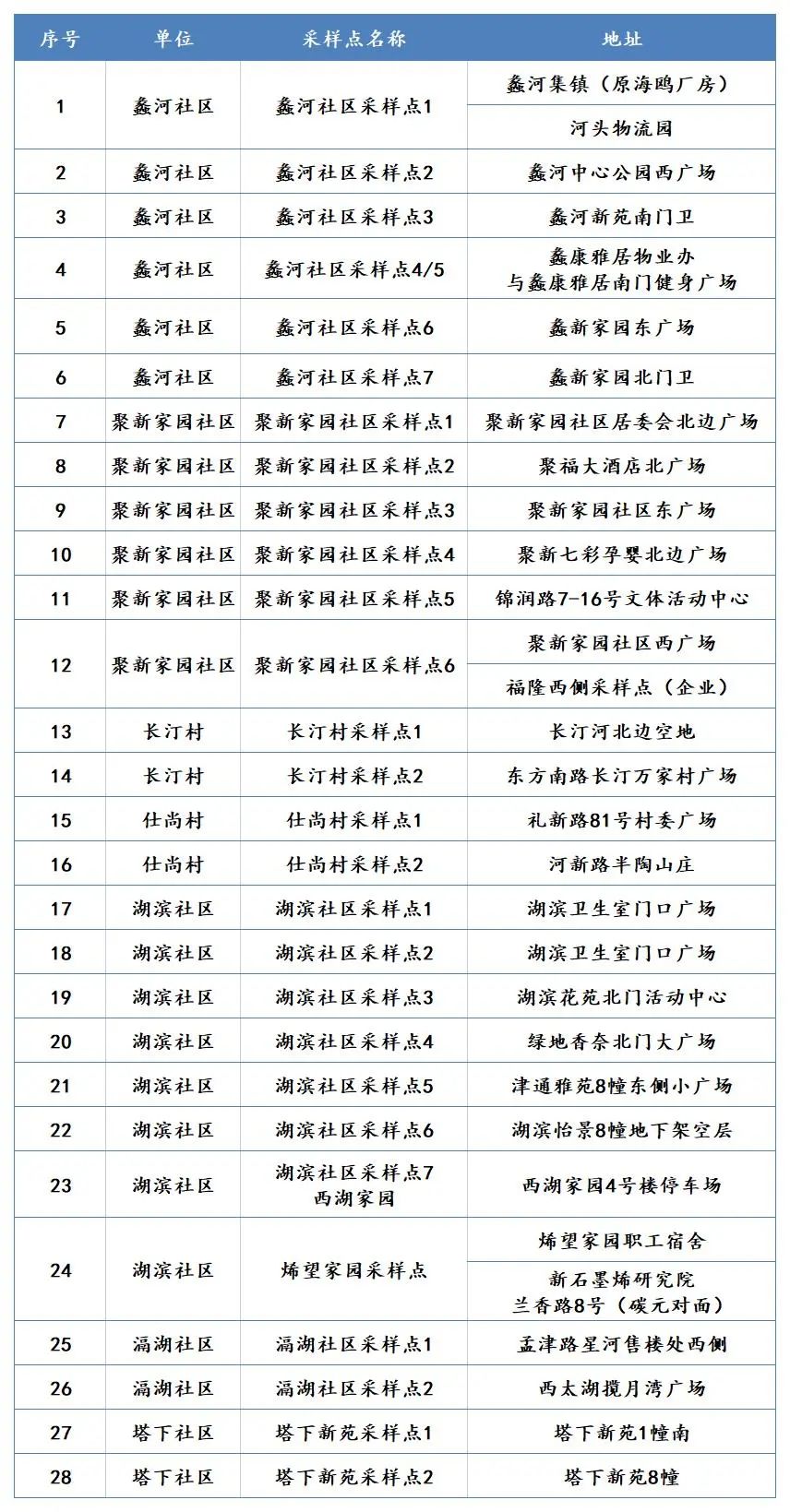 核酸检测采样时间为4月18日16:00—21:00。请按照各村(社区)、企业管理部门工作人员的通知指引,分批次、分时段有序到达。采样地点详见下图,如有调整以具体通知为准。