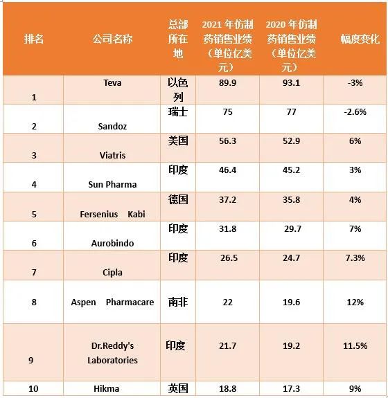 近日,Fierce Pharma发布了2021年全球仿制药巨头TOP10榜单,该榜单主要以2021年仿制药的销售业绩为主。