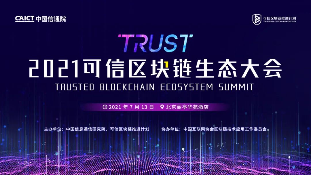 为宣贯和落实指导意见相关精神,全景展示我国区块链发展效果,搭建区块链政企交流与生态合作平台,中国信息通信研究院(以下简称“中国信通院”)联合可信区块链推进计划、中国互联网协会区块链技术应用工作委员会,将于7月13日下午在北京举办“2021可信区块链生态大会”。